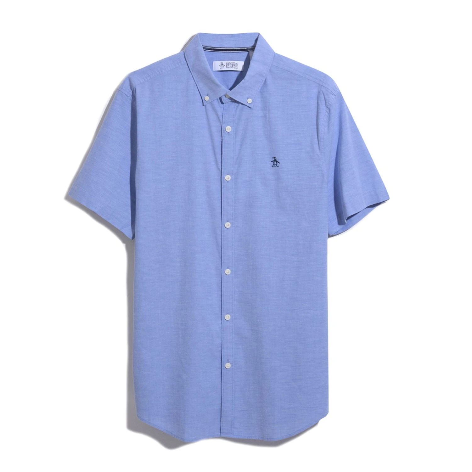 Update your everyday wardrobe with eco-friendly fashion with this Original Penguin men’s dress shirt. It’s crafted from EcoVeroâ„¢ and Oxford fabric to blend sustainability with durability for long-lasting wear. This men’s button-up shirt also features a slim fit silhouette and has added stretch for comfortable and stylish all-day wear.