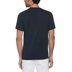 This Original Penguin men’s t-shirt offers a cool, slim-fitting design perfect for everyday casual wear. Made with soft jersey fabric to help ensure comfort in any weather conditions, the cotton t-shirt is a smart addition to any guy’s wardrobe. The tee’s standout feature is a floral circular logo print on the chest that features a raised puff effect for a unique twist. Durable, stylish and easy to wear, this versatile men’s tee will quickly become one of your go-to tops.