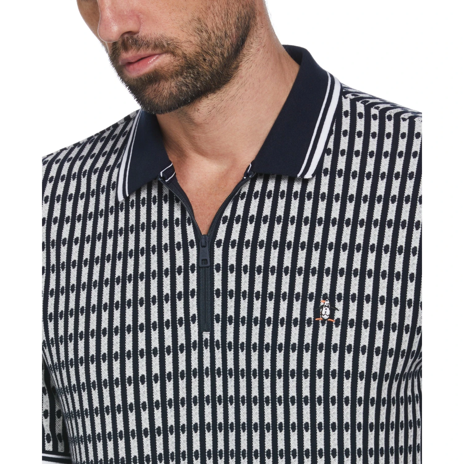 This Original Penguin men’s polo shirt is a modern classic. Stylish and comfortable, this short-sleeved, slim-fit shirt features a refined polo collar so it’s easy to dress up or down. Crafted with durable jacquard fabrication, it showcases a subtle 2-color geometric pattern woven into the 100% cotton fabric, ensuring breathable comfort all day long. This versatile polo shirt is great for casual days at work or on the go when you want to look sharp