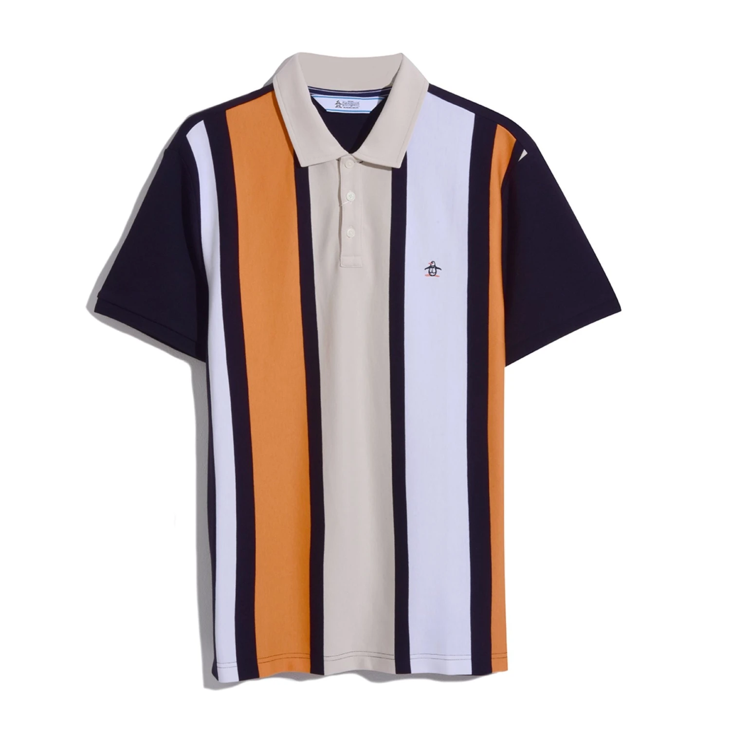 Sharp stripes stand out on this Original Penguin polo. Crafted from 100% cotton made with interlock fabrication, this men’s polo breathes and stretches with you. The slim fit, open polo neck and impossibly flattering vertical stripe print dresses up nicely with a jacket or tailored pant.