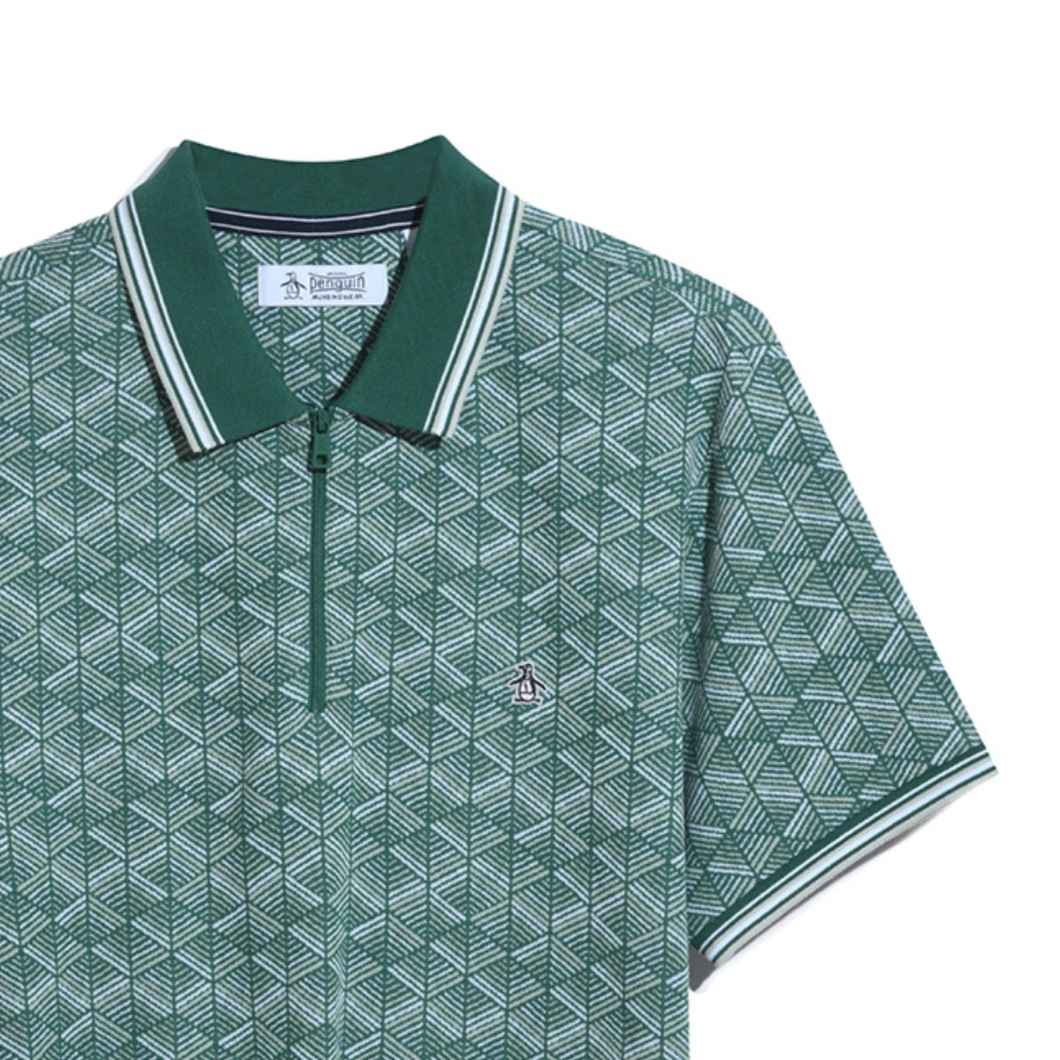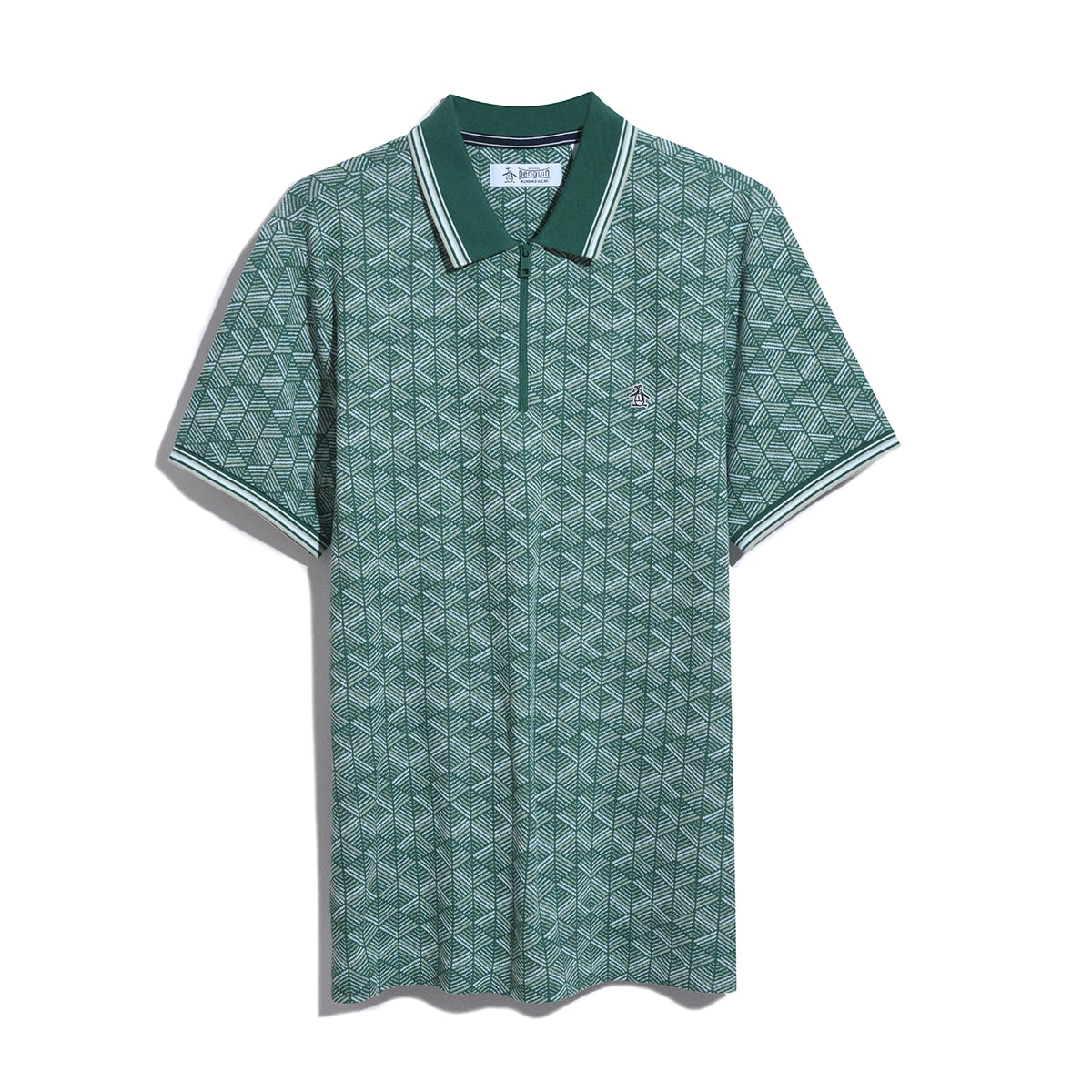 This Original Penguin polo shirt for men offers both quality and style, making it an essential addition to your work or casual wardrobe. Crafted from 100% cotton fabric with a jacquard knit for added texture, this men’s polo also features a unique geometric print to give your look a modern touch. This polo shirt includes a convenient quarter zip closure and features a streamlined fit.