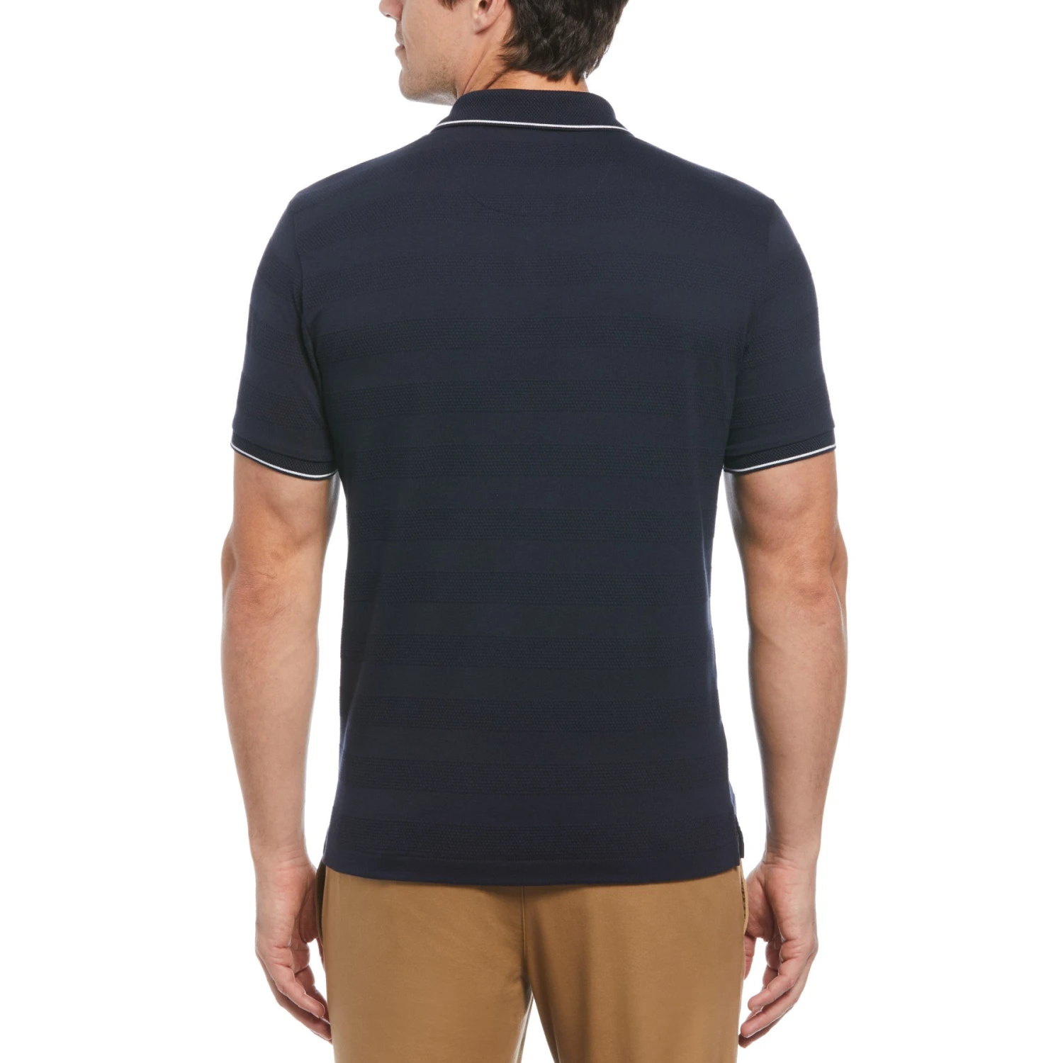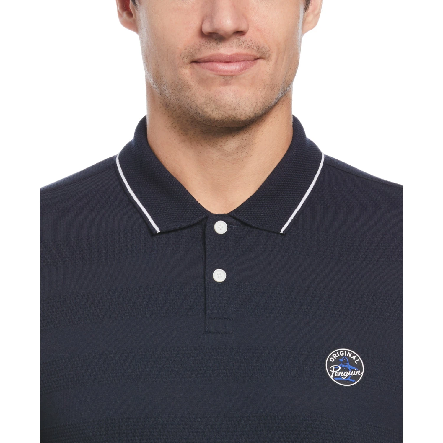 This men’s polo from Original Penguin is a versatile choice for your collection. The unique honeycomb pattern adds a sophisticated touch you can dress up or down depending on the occasion. Made for comfort as much as style, this polo shirt for men also features a two-button placket and short sleeves for easy wear. The jacquard fabric also gives this polo shirt durability and a soft feel for lasting wear.
