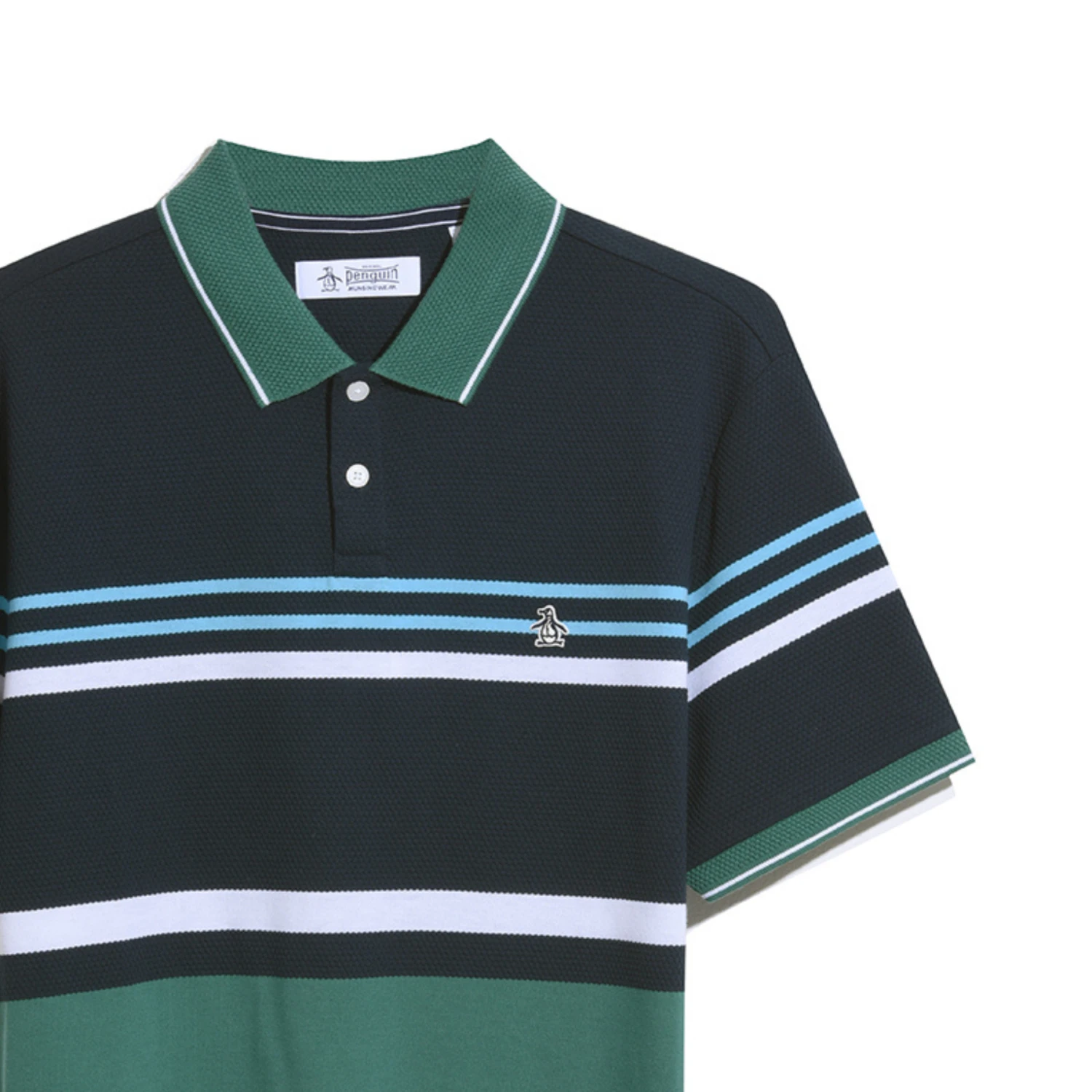 Ideal for casual or office wear, this Original Penguin men’s polo is a versatile addition to any man’s wardrobe. This polo shirt is crafted from textured jacquard fabric with a striped honeycomb pattern to give your outfit a refined aesthetic.Â