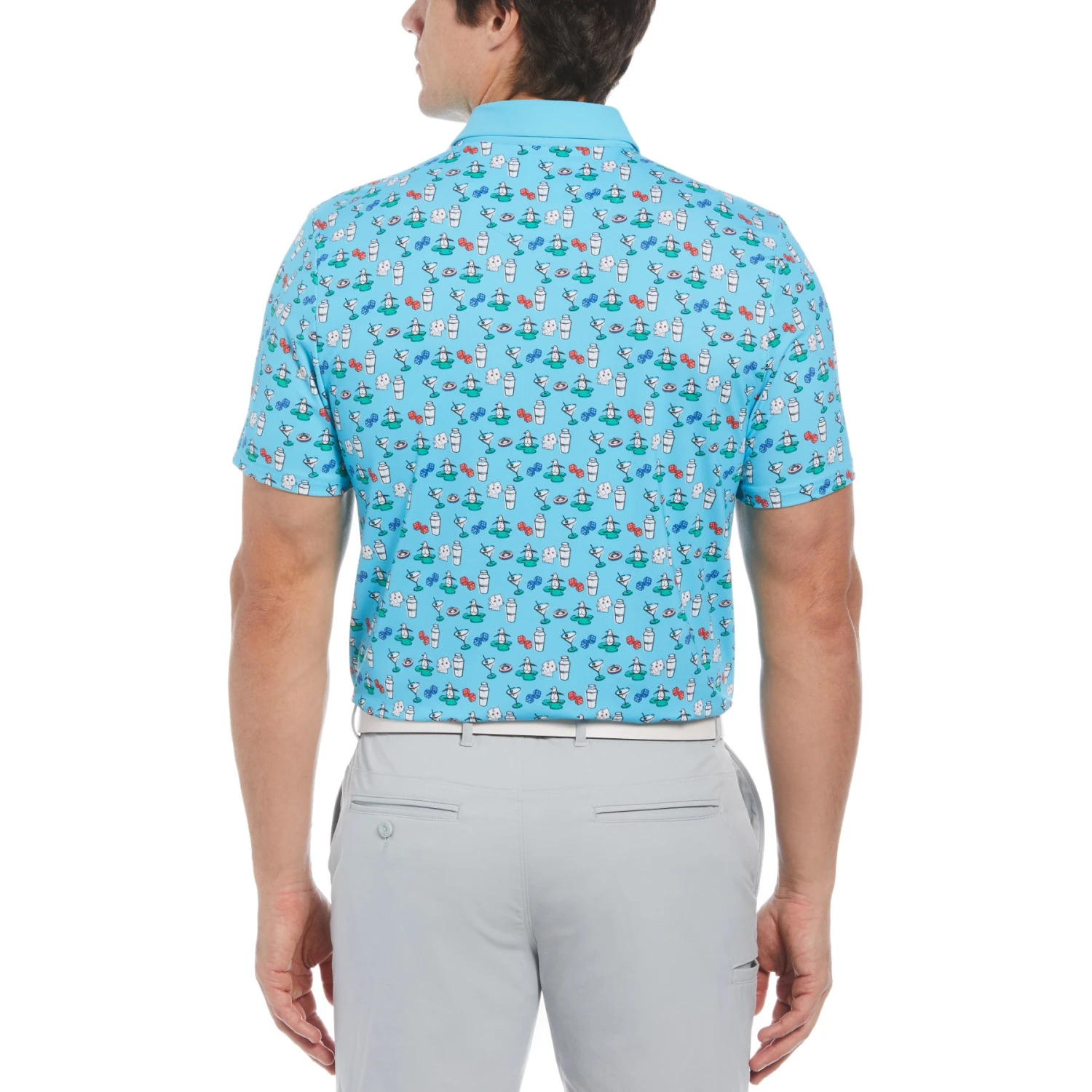 Original Penguin’s golf polo shirts are a sustainable choice, crafted from recycled polyester. These golf tops are lightweight, stretchy, and designed with a retro martini print. Short sleeves offer comfort, while the single knit fabric ensures durability. Ideal for golf clothing, they feature moisture-wicking technology to keep you dry and comfortable during your game. Embrace eco-friendly fashion on the golf course with these stylish and functional polo shirts.