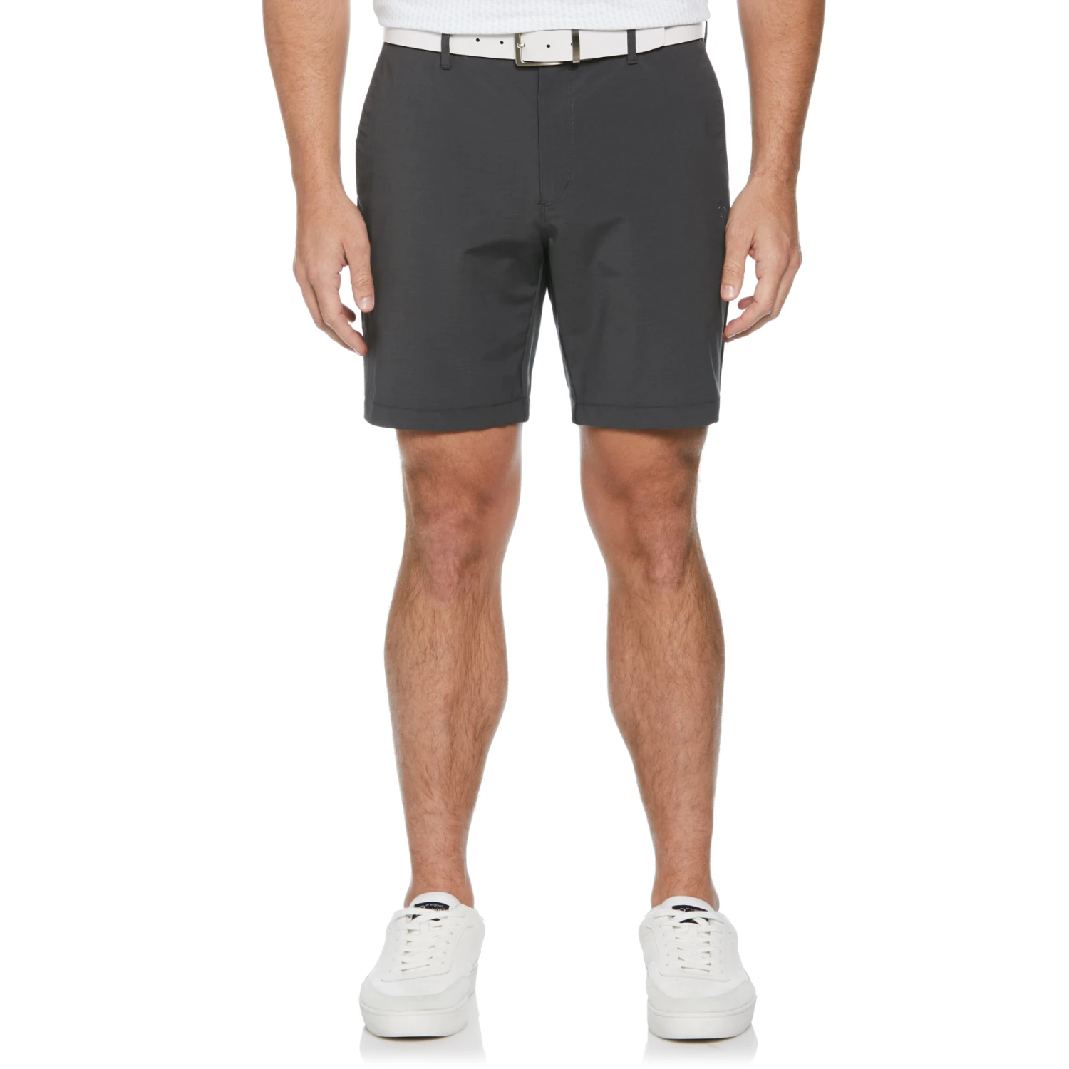 Keep Pete on your side with these Original Penguin performance golf shorts. An embroidered Pete logo below the left pocket adds some subtle Original style and moisture-wicking properties help you keep your cool. These versatile men’s golf shorts feature durable plain weave stretch fabric that follows your every move. They’re equipped with a covered elastic waistband and a silicone printed gripper that allows for flexibility while also ensuring your shirt stays neatly tucked in place. With 30% recycled polyester content, these 8” shorts are a sustainable style choice for the golf course or for everyday wear.