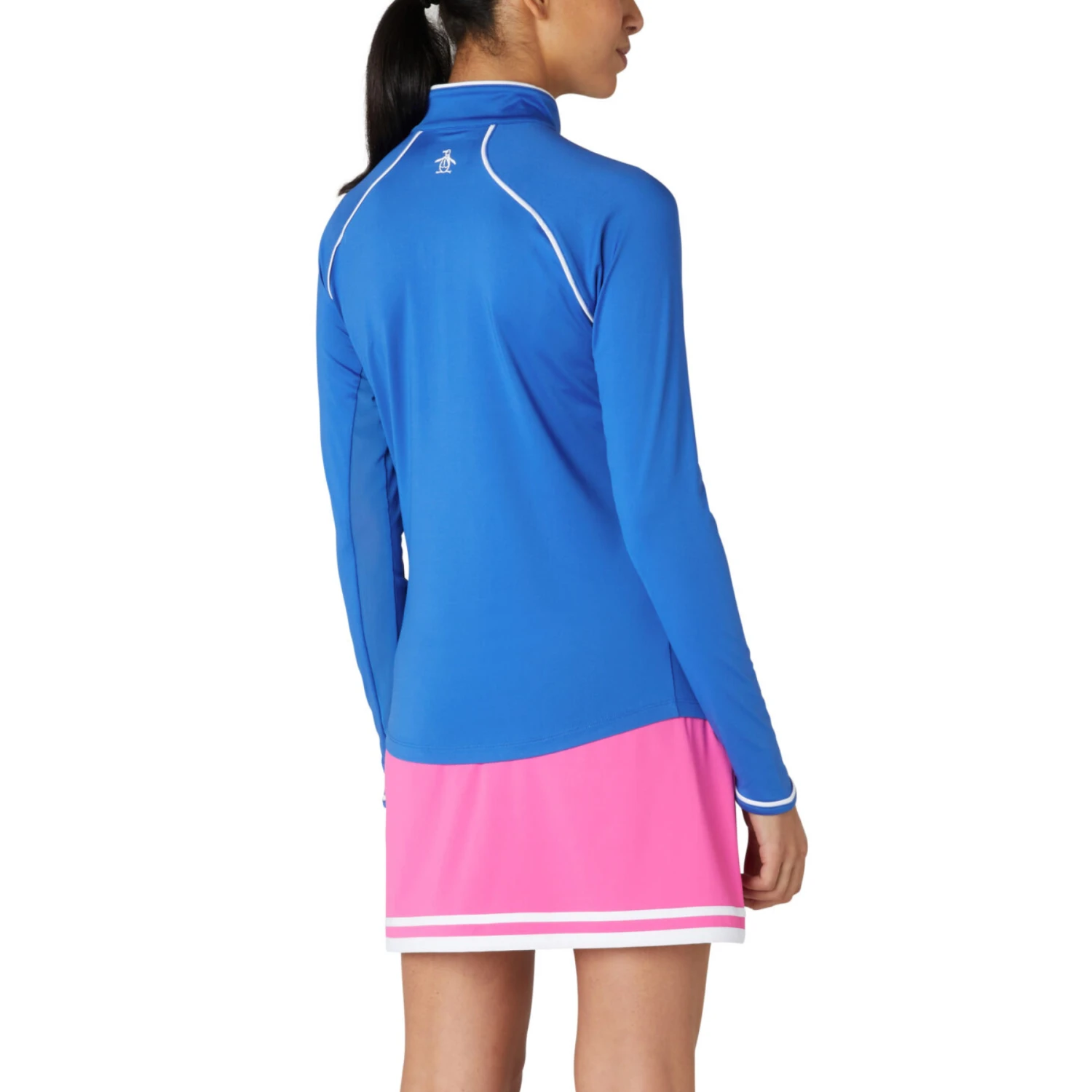 Sun protection is always in style and this Original Penguin women’s tennis shirt proves it. Apart from blocking harmful UV rays, this athletic wear also has long sleeves that give your arms extra coverage. The lightweight single knit fabric features a blend that includes 30% recycled polyester from plastic bottles. Say goodbye to excess perspiration with our moisture-wicking feature that helps you stay dry during the match.